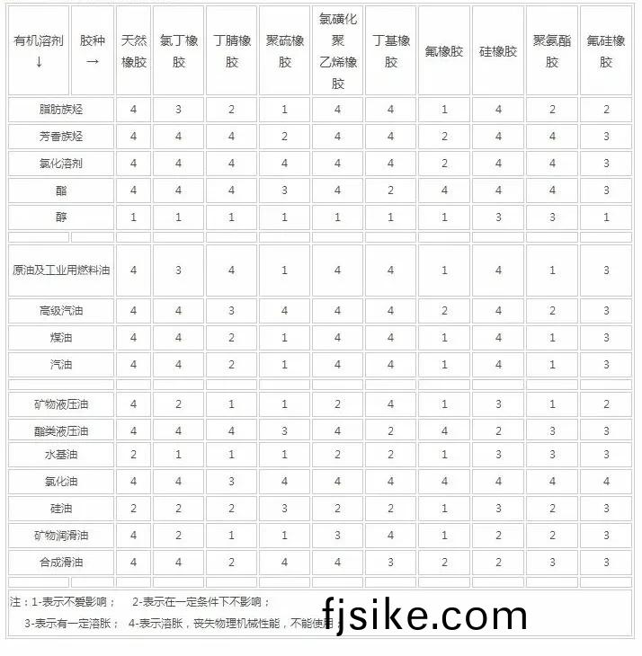 3、常(chang)見製造(zao)油(you)封材料(liao)耐(nai)腐蝕(shi)橡(xiang)膠(jiao)的性(xing)能(neng)對(dui)比