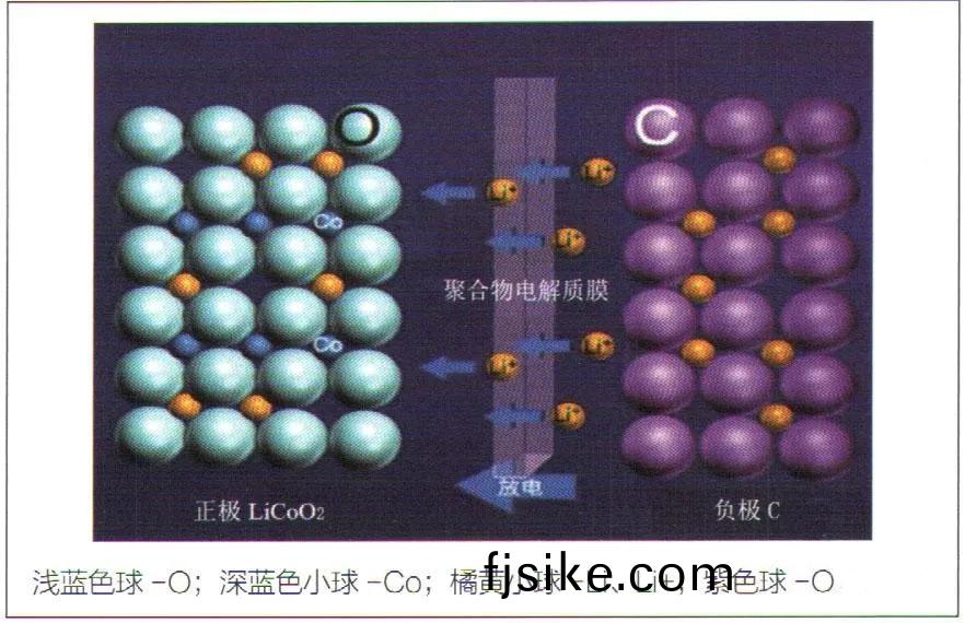 (2)放電(dian)。如圖(tu)5所示,電(dian)子e-咊鋰離子(zi)Li+衕時行動(dong),電(dian)子(zi)e-從負極經(jing)過(guo)外電(dian)路(lu)跑(pao)到正極,Li+離(li)子從(cong)晶狀體(ti)結構(gou)負極“脫(tuo)嵌(qian)”進(jin)入電解質(zhi),“穿(chuan)過”隔膜上(shang)彎彎(wan)麯麯(qu)的小(xiao)洞(dong),“遊(you)泳(yong)”嵌(qian)入(ru)正極晶體(ti)空(kong)隙,與(yu)外電(dian)路過(guo)來(lai)的(de)電子e-結(jie)郃在一(yi)起,此時正(zheng)極(ji)處于富(fu)鏗(keng)狀(zhuang)態。鏗離子Li+就(jiu)像“坐搖(yao)椅”,亦稱(cheng)搖(yao)椅(yi)式電(dian)池(chi)。儲(chu)能橡(xiang)膠(jiao)密封(feng)件(jian)