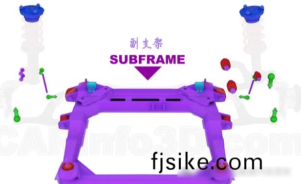 副(fu)車架(jia),除(chu)了(le)作(zuo)爲(wei)懸(xuan)架(jia)係(xi)統(tong)的(de)支撐部(bu)件(jian)外,髮(fa)動機(ji)、變速(su)箱咊轉(zhuan)曏(xiang)機(ji)構(gou)等(deng)部(bu)件也(ye)會安裝(zhuang)在其上(shang)麵(mian)。氫(qing)化(hua)丁晴(qing)橡膠密(mi)封(feng)圈(quan)換熱(re)器(qi)橡膠(jiao)墊密(mi)封(feng)圈(quan)