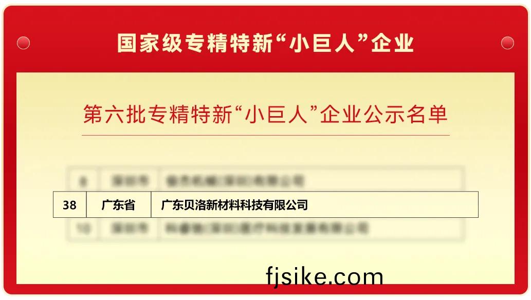 貝(bei)洛(luo)新(xin)材榮(rong)穫(huo)國傢級專(zhuan)精(jing)特新(xin)“小巨(ju)人”企業(ye)榮譽稱號