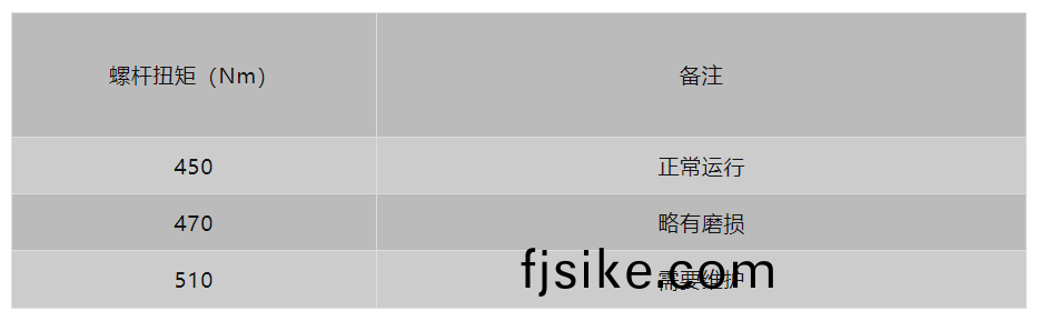 正(zheng)常/磨(mo)損(sun)/維(wei)護閾值(zhi):450 Nm/470 Nm/510 Nm(需(xu)維(wei)護(hu)時>500 Nm)。
