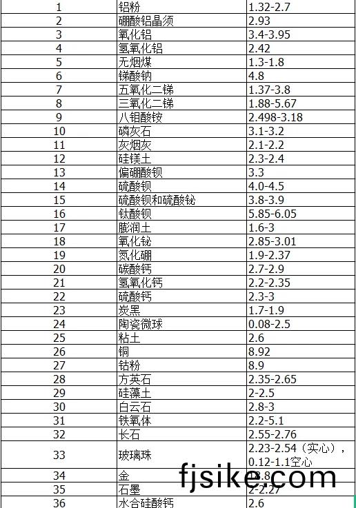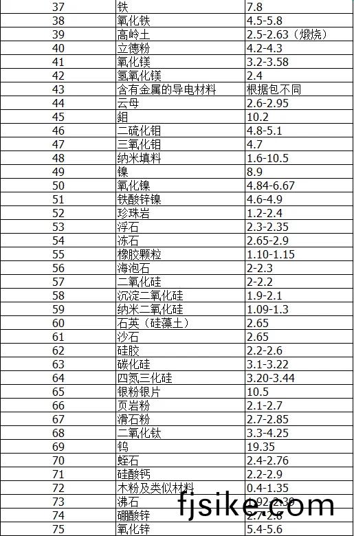 橡膠(jiao)常用助(zhu)劑比(bi)重(zhong)錶(biao)2