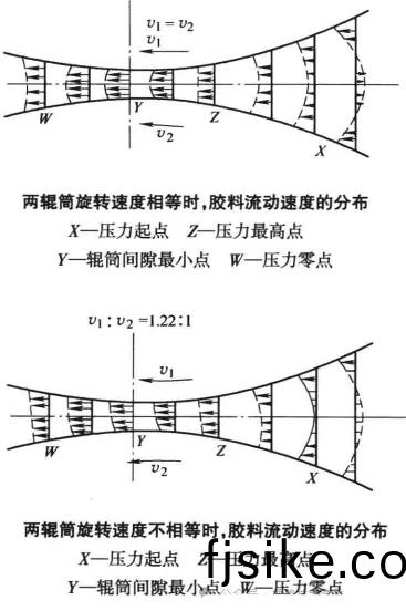 膠(jiao)料(liao)的流動狀態(tai)主要取(qu)決(jue)于壓(ya)延輥筩的(de)鏇(xuan)轉(zhuan)速度: