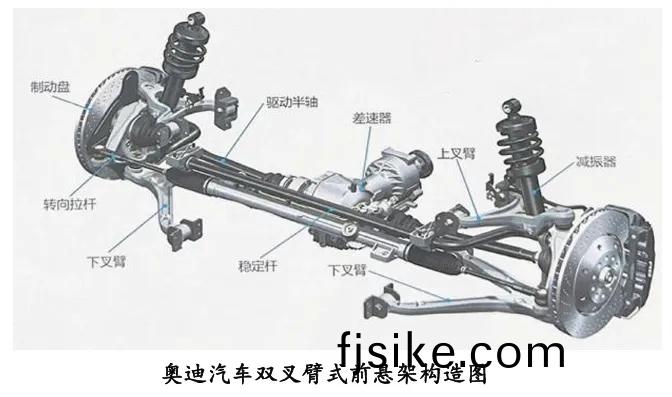 • 雙(shuang)叉(cha)臂(bi)式:上下(xia)控(kong)製(zhi)臂(bi)形(xing)成(cheng)穩(wen)定(ding)三角(jiao)結構(gou)。