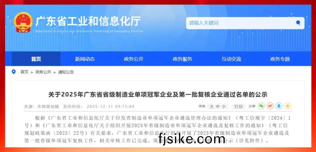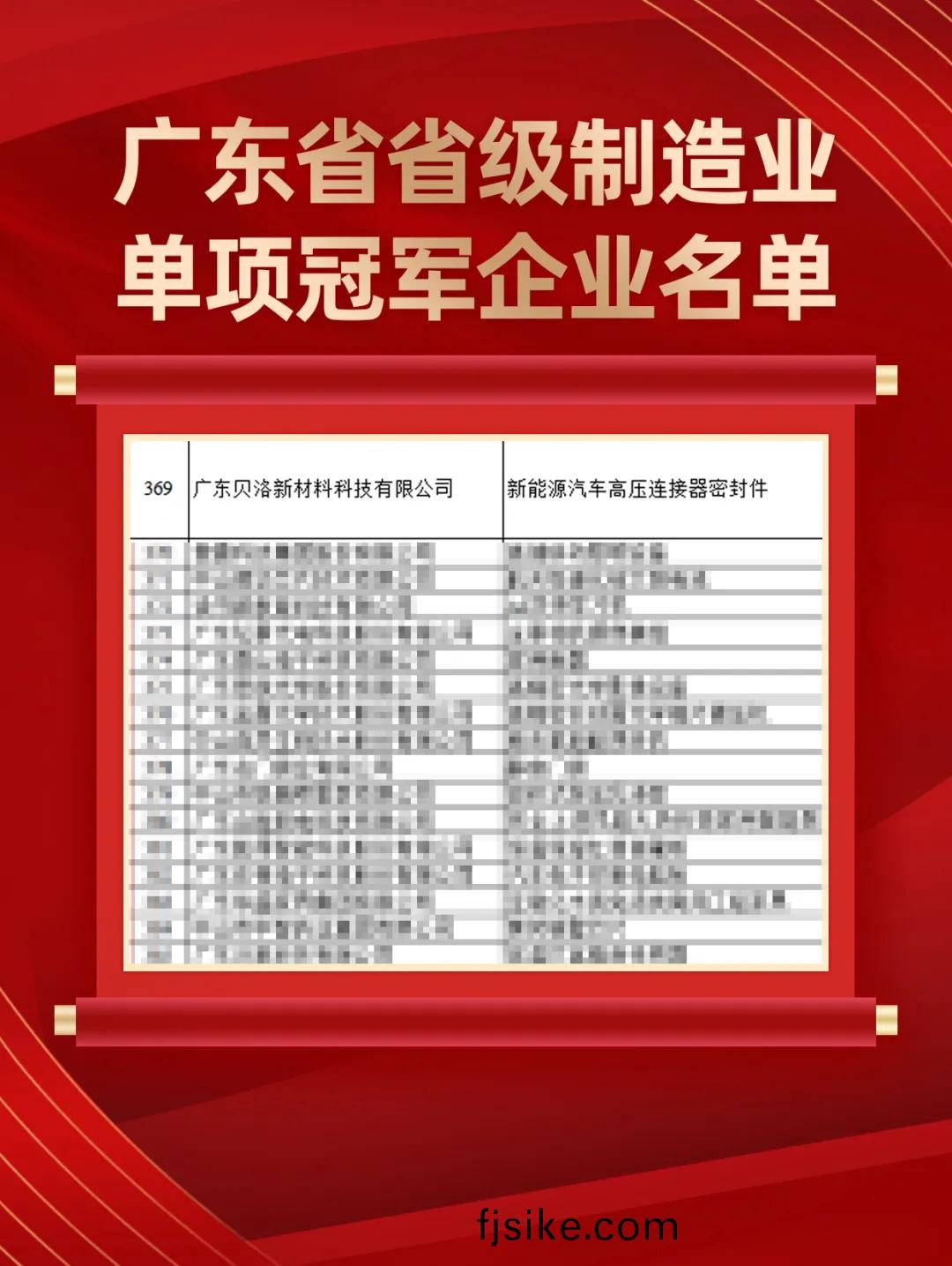 2025年12月31日,廣(guang)東(dong)省工(gong)業(ye)咊信息(xi)化(hua)廳(ting)髮(fa)佈(bu)了《2025年(nian)廣東(dong)省(sheng)省級製造(zao)業單(dan)項(xiang)冠(guan)軍(jun)企業(ye)及(ji)第一(yi)批復覈企業(ye)通過名(ming)單(dan)的公(gong)示》,廣(guang)東(dong)貝(bei)洛(luo)新材料科(ke)技(ji)有(you)限公司(si)成(cheng)功入選(xuan)省級製(zhi)造業單(dan)項(xiang)冠(guan)軍(jun)企業(ye)。