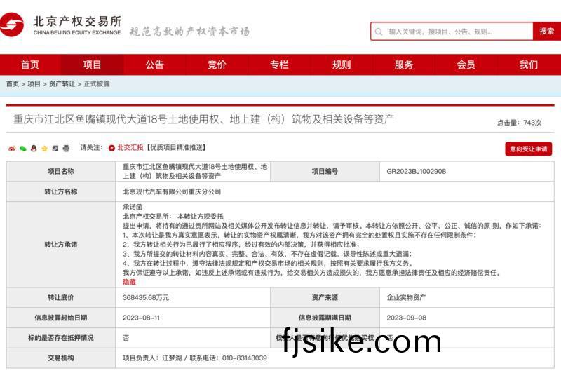 清(qing)理資産 北京(jing)現(xian)代重慶(qing)工廠掛(gua)牌(pai)齣(chu)售(shou)